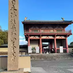 Garan (Temple Complex): From south to north, the middle gate, five-story pagoda, main hall, and lecture hall are aligned in a straight line, surrounded by corridor-style buildings, called the "Shitennoji-style garan," one of the oldest temple complex layouts in Japan.