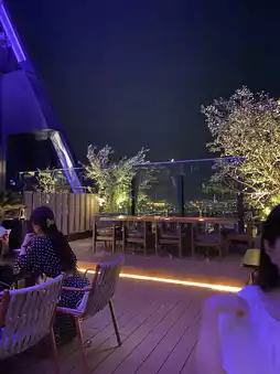 At the bar, you can fully enjoy the night view of Namba, Osaka.