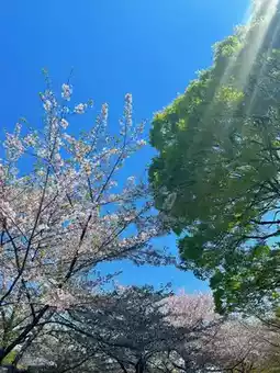 Stepping into the park feels like entering a pink dream world. About 3,000 cherry trees bloom in unison, with varieties like Somei Yoshino and Yaezakura competing in beauty. The dense pink and white petals, set against the blue sky, look like a painting.