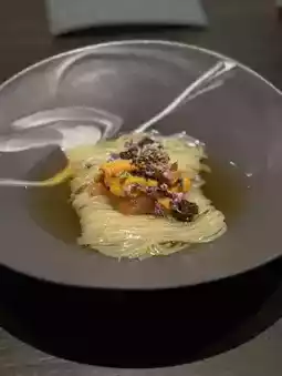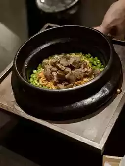 Wagyu tongue, bamboo shoots, kinome leaves, Uonuma Koshihikari rice