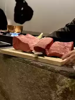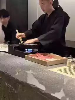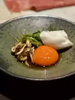 Omi beef sirloin, golden red egg from Kinkei chicken