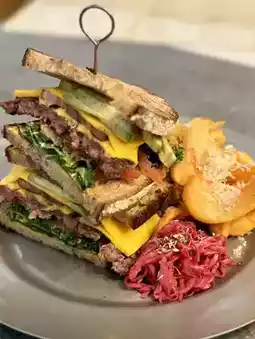 Juicy beef patty combined with rich cheddar cheese and avocado, with the tanginess of the campagne bread and the flavor of the comeback sauce creating an exquisite sandwich.