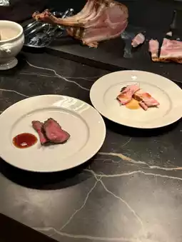・Main dishes: A luxurious lineup of main dishes. The domestic beef roast beef is enhanced by gravy sauce, highlighting its umami. The rotisserie bone-in pork loin is juicy and fragrant, allowing you to fully enjoy the meat’s flavor. The seafood gratin pairs rich white sauce with seafood perfectly, making it a satisfying dish.