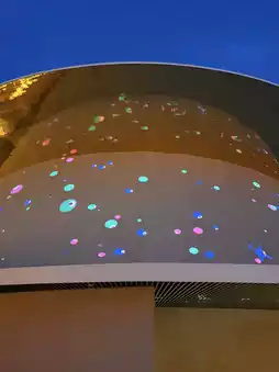 The EXPO Hall is the main pavilion of the Expo, continuing the legacy of the Sun Tower from 50 years ago. Its dome is coated in gold, and from a distance, it looks like a hole in the sky, creating a sci-fi optical illusion. At night, 109 collected animation works are projected onto the shiny hat-like exterior wall. If you have time, you can rest on a chair and enjoy animations from around the world.
