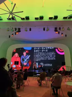 The Australia Pavilion was actually the one I drew a ticket for seven days ago. Later, I found out you only need to wait about 1 to 2 minutes to enter. The first exhibition area is themed around forests, trying to let visitors experience Australia’s nature through sounds and scents. The second area features unique multi-screen images showcasing Australia’s marine nature and biodiversity. In the evening, there are singer performances and beer stalls where you can enjoy a drink and feel the charm of Australian music.