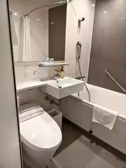 The hotel room only provides shampoo, conditioner, shower gel 🚿, toilet paper 🧻, and toothpaste and toothbrush 🪥. Tea bags, combs, hot coffee, chocolate, and other items need to be picked up at the reception on the 18th floor. There is also a luggage scale on the 18th floor.
