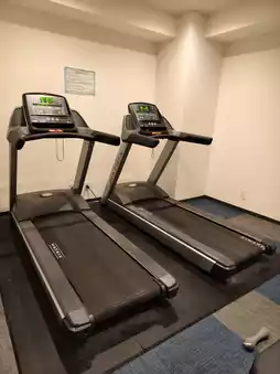 On the 2nd floor, there are two coin-operated washing machines, a soda machine, and a gym room. The gym room has one stationary bike, two treadmills, fitness balls, and more.