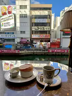 Start your morning at Hoshino Coffee☕ Sit by the window, order a soufflé with an Americano, and enjoy the sweet, soft soufflé paired with rich coffee. With the unique Shinsaibashi view outside the window, it’s the perfect way to kick off a day full of energy.