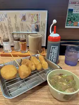 Genkotsu Kushikatsu, once a trendy spot, now no need to queue. Grab a few skewers as snacks and enjoy eating while strolling—super satisfying.