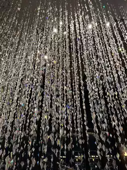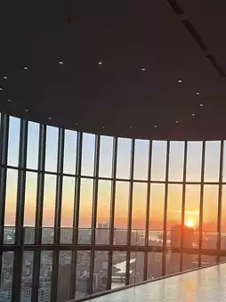 The moment you step out of the elevator, the dazzling crystal decorations catch your eye, exuding a high-end vibe. Around 5:40 PM at dusk, the sunset pours in, bathing the restaurant in a golden glow—every photo looks like a masterpiece.
