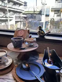Stepping inside, you are greeted by a rich Japanese garden atmosphere, as if entering a time tunnel. The first floor sells take-away sweets like dorayaki; coffee is served on the second floor. Find a seat by the window, bask in the sunlight, and enjoy ultimate relaxation.