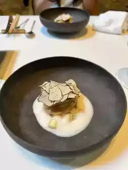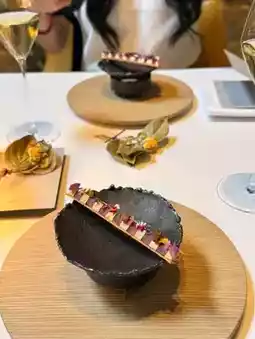 The new spring menu is truly eye-catching! The appetizer is tuna paired with foie gras and apple, where the charred aroma of fire, the smoothness of water, and the fruity scent of wind cleverly intertwine. Midway through, there’s a dish that surprised me—a quail coated with roasted almonds, crispy on the outside and tender inside. Each bite bursts with a smoky aroma and juicy meat, combining wildness and delicacy.