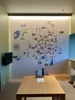 OMO7 Osaka is located in Shin-Imamiya, a modest yet uniquely charming area. It’s not a towering skyscraper but a design hotel close to local life. Standing on the open rooftop lawn, Tsutenkaku Tower and Tennoji’s scenery are right before your eyes, especially at night when the lights twinkle, blending urban vibes with nostalgic charm into a unique picture.