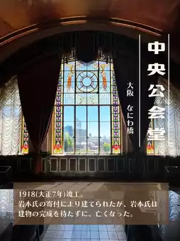 When you think of Osaka, you think of the Central Public Hall! I've always wanted to see the stained glass in the VIP room, and I finally got the chance to visit. The room was stunningly beautiful, showcasing the craftsmanship of skilled artisans.
