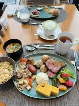 At “Atmos Dining,” we savored a fusion of Japanese and Western dishes made with local ingredients. 🍽️🍷 My grandmother was especially touched by the beautifully presented dishes and the surprise birthday cake prepared by the staff. She said, “Celebrating my birthday in such a wonderful place feels like a dream.” 🎂💐 Additionally, we spent a luxurious time in the Executive Lounge, enjoying afternoon tea and evening cocktails while overlooking the city of Osaka. 🍸🫖