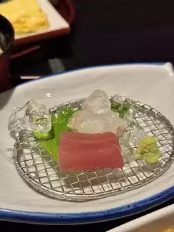 The sashimi portions are small but you can enjoy two kinds: tuna and sea bream, very satisfying โ