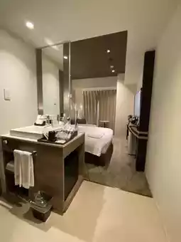 Also, the room is clean, no need to say more, the bathroom has a separate wet and dry area and is clean. The bed size and firmness are perfect for sleeping, I can fall asleep in about 5 minutes☺️.