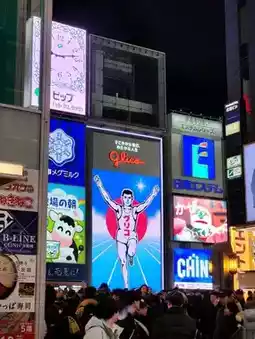 💛Dotonbori definitely gives you the feeling of "I've arrived in Osaka!" The moment you step onto the street, countless signs and neon lights catch your eye, people walking along the Dotonbori River, street performances, and the smell of food—all of it is lively and vibrant. The first thing that stands out is the famous Glico sign! It's bigger than I expected, and you can get a perfect shot from the bridge next to the river. Watching everyone pose and take pictures, I joined in too :) And you can't miss the food. There are many restaurants, but there are also plenty of street foods like takoyaki and crepes that you can easily eat on the go, making it fun to try one as you walk. Going around sunset, the sunset was so beautiful!! The night view lights up beautifully, and the atmosphere becomes really nice. Although it’s crowded, Dotonbori’s bustling vibe is part of its charm.