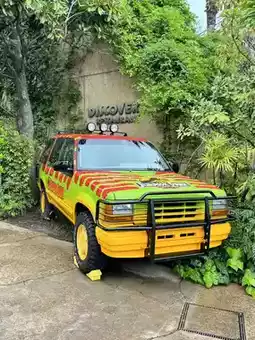 Jurassic Park: Ride a boat into the dinosaur's habitat and experience the thrill of being chased by giant dinosaurs, then take a splashing plunge!