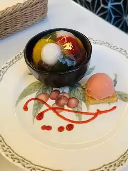 The presentation is exquisite, with French toast paired with fresh fruit, sweet and soft; the unique desserts on the side are cute and tasty, and paired with an iced drink, they are super refreshing 🧊