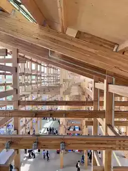 This landmark, called the "Grand Roof," is based on traditional Japanese wooden framework techniques and is constructed from over ten thousand wooden slats. It is both majestic and warm, symbolizing the coexistence of humans and nature 🌳. During the day, sunlight filters through the lattice, while at night, lighting creates a completely different atmosphere ✨