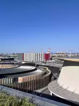 📍 This place is not only the transportation hub of the venue but also features an observation walkway where you can overlook the entire Expo site and Osaka Bay, with clear views of Kobe and Awaji Island on the horizon 🌊🏙️