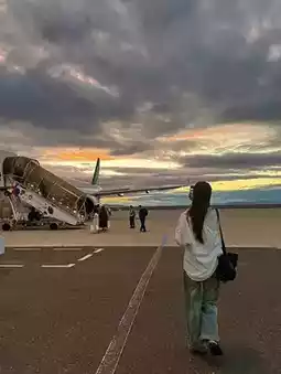 Before the flight, we stopped to buy souvenirs like mochi snacks, green tea KitKats, Japanese perfume, and bear socks at the duty-free shop ✈️🎁
