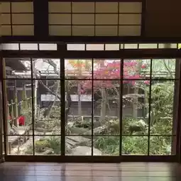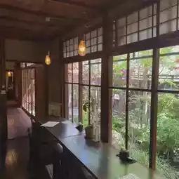 • A Japanese-style space renovated from an old house, with wooden beams, paper sliding doors, and a dry garden, full of traces of time