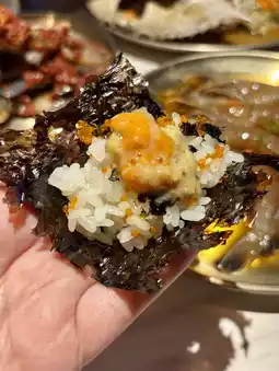 The blue crab jjigae’s rich broth infused with crab umami and spicy soup is superb. Enjoying the crab meat while savoring its deep richness was a delight.