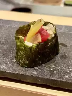 The owner is a former sumo wrestler who trained at the highly sought-after restaurant "Sushi Yamato" in Shinsaibashi. In addition to offering sushi and delicacies that showcase his solid skills and dedication, the restaurant features daily ramen made with chanko and seafood-based broth. The owner's performance is also a highlight.
