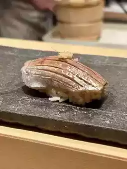 The first bonito features a moist texture and rich flavor, with umami spreading the more you chew. The swordtip squid has a beautiful translucent texture and pronounced sweetness, offering a sticky mouthfeel to enjoy.