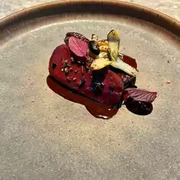 The lunch set is 13,000 yen, which is relatively affordable, but the taste is subjective! The appetizer shrimp tart was quite thoughtful, with a whole shrimp paired with pineapple chunks, tasting very refreshing; the Spanish cold soup adaptation was interesting, with squid wrapped in pork paired with squid ink crisps—odd presentation but tasty! However, the venison with cocoa sauce was really unacceptable, the gamey flavor was too strong, and the peanut sprouts were a bit astringent. The dessert was also not outstanding; the charcoal-grilled corn gelato with coffee sauce was a combination that's hard to describe 😅