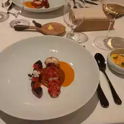 We chose the most expensive menu with wine pairing, costing nearly 60,000 yen per person (ouch, my heart hurts), but seeing the spread of ingredients on the table made it feel worth it! Huge scoops of caviar and black truffle overflowing, lobster and wagyu beef of unbeatable quality, foie gras and pigeon cooked with great depth. The best was the black truffle radish soup, where French soul met Japanese essence—so fresh it made my tongue tingle!