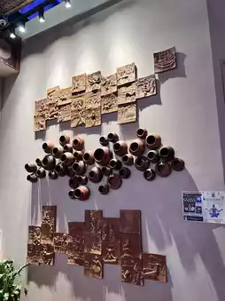 Stepping inside feels like traveling to a land full of cultural stories and modern innovation. The pavilion showcases everything from traditional carving art, carpet weaving, and pottery culture to modern railway technology 🚆, with each exhibition area dazzling visitors. The wall adorned with copper sculptures and pottery is not only a visual shock but also a microcosm connecting the diverse cultures across India.