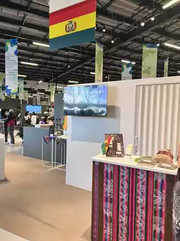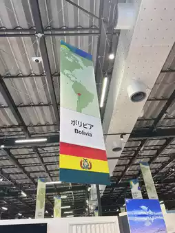 Bolivia Pavilion is definitely the most "colorful" booth in Common A Hall! As soon as you approach, you’ll be drawn to the ethnic totems on the ceiling, each pattern full of Bolivia’s soul and rhythm. The pavilion centers around the upcoming "200th Anniversary of Bolivia’s Independence," offering a comprehensive look at its history, culture, and industries!