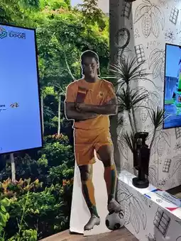 There are colorful traditional costumes, exquisite wood carvings, musical drums, and even a life-sized cardboard cutout of football superstar Drogba! In the video, he passionately introduces the country on the beach👍