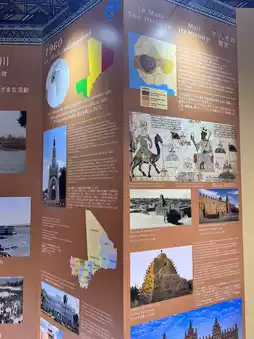 At the center of the pavilion, starting with "Mali's Independence in 1960," it showcases how this country transitioned from a historical empire to a modern nation🏛️. The walls display the mud-brick architecture of the Sankore Mosque and the Djenné Mosque, highlighting Mali’s unique African Islamic architectural aesthetics🕌.