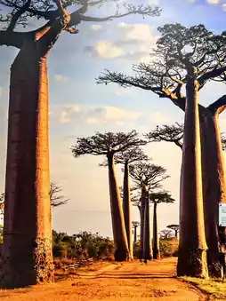 As soon as you step into the Madagascar Pavilion, it feels like entering another world—the towering model of a giant baobab tree stands before you, greeted by the island nation's unique warmth and natural energy🌿. The giant photos on the walls showcase the famous Avenue of the Baobabs, with golden sunsets casting shadows on the trees; the image alone is breathtaking🌅.