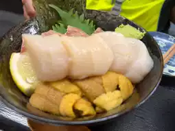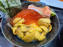 The salmon, sea urchin, and scallop bowl we ordered was also amazing. The salmon belly had beautiful marbling, smooth and tender with no fishy smell, and the sashimi-grade scallops were delicious too.