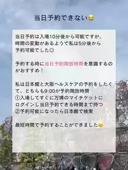 I secured same-day reservations for the Japan Pavilion and Osaka Healthcare!