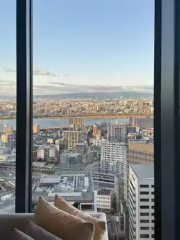 🏠 Room Highlights: The corner floor-to-ceiling windows are stunning! You can see the Ferris wheel and Hankyu night view, waking up to sunshine is super cozy🌇 Bathroom amenities by BYREDO, but the bathroom layout is a bit inconvenient, recommend bringing your own bath bag~ The wooden and granite dresser design is top-notch, spacious with a corner spot, maximizing comfort
