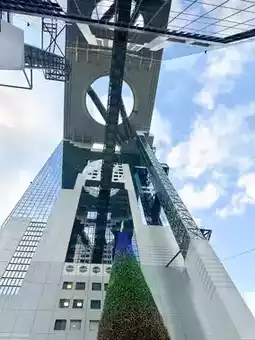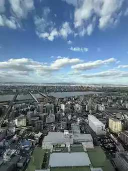 This is the Umeda Sky Building, a high vantage point in Osaka where you can enjoy a 360-degree view. I must say, anyone who loves city views should not miss this because it’s stunning!! The view during sunset is especially beautiful in a unique way. A highlight for tourists here is usually taking photos with the very long escalator tunnel, which is a must-check-in spot for anyone visiting Osaka. There is also a small café at the top where you can relax. During our visit, the lower part of the building was decorated with a warm Christmas theme.