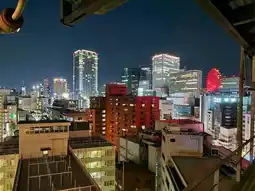 The view faces Kitahama and Umeda Station. There aren’t many tall buildings blocking the view in front, so it offers a much better view than expected. The Hep Five Ferris wheel proudly shows off its bright red colors on the right.