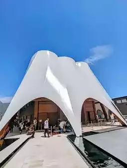 Designed by Kengo Kuma, the Portugal Pavilion uses recycled fishing nets and hemp ropes to weave light and shadow into wave-like imagery, perfectly matching Portugal’s Age of Discovery history and marine environmental protection theme.