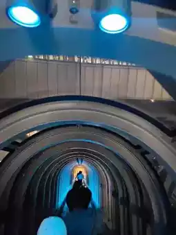 There’s something poetic about standing that high, watching the city pulse and breathe from a distance. And just when I thought the view couldn’t get more surreal, the soft glow of UV lights painted the space with luminous hues — making us gently glow in the dark, as if part of the skyline itself.