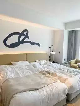 Attention to detail is evident in the placement of closets and washbasins, as well as the softness of the indirect lighting. Whether alone or with a companion, it’s a comfortable space to stay in 🛏️