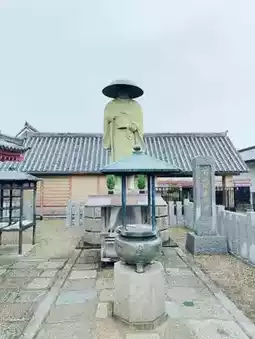 At one corner of the grounds stands a larger statue—earthy and unpolished, resembling a humble farmer. It feels less like a deity and more like a guardian of the everyday, reminding passersby that reverence can also wear simplicity.