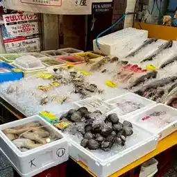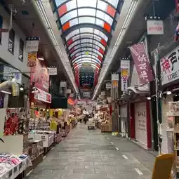 Kuromon Ichiba Market is a fish market where everyone comes to find food and souvenirs. It is a fish market that opens late. Usually, you see markets open early in the morning, and if you come late, people start to leave or the goods are sold out. But this Kuromon Ichiba Market opens from 9:00 AM to 6:00 PM. The closer to noon, the more crowded and lively it gets. I think this market has almost become a tourist attraction now.