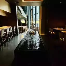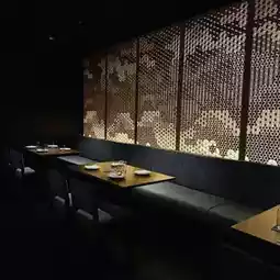 "Ugen" features a modern Japanese aesthetic with black walls contrasting the cherry wood bar, and the open kitchen fills the air with the aroma of binchotan charcoal🔥~