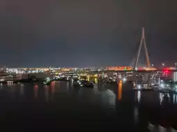 However, it closes at midnight and opens at 6 AM. The rooms face the Tempozan Bridge, and below you can see large ships passing by frequently, offering a beautiful ocean city view. From the onsen terrace, the Ferris wheel is clearly visible.